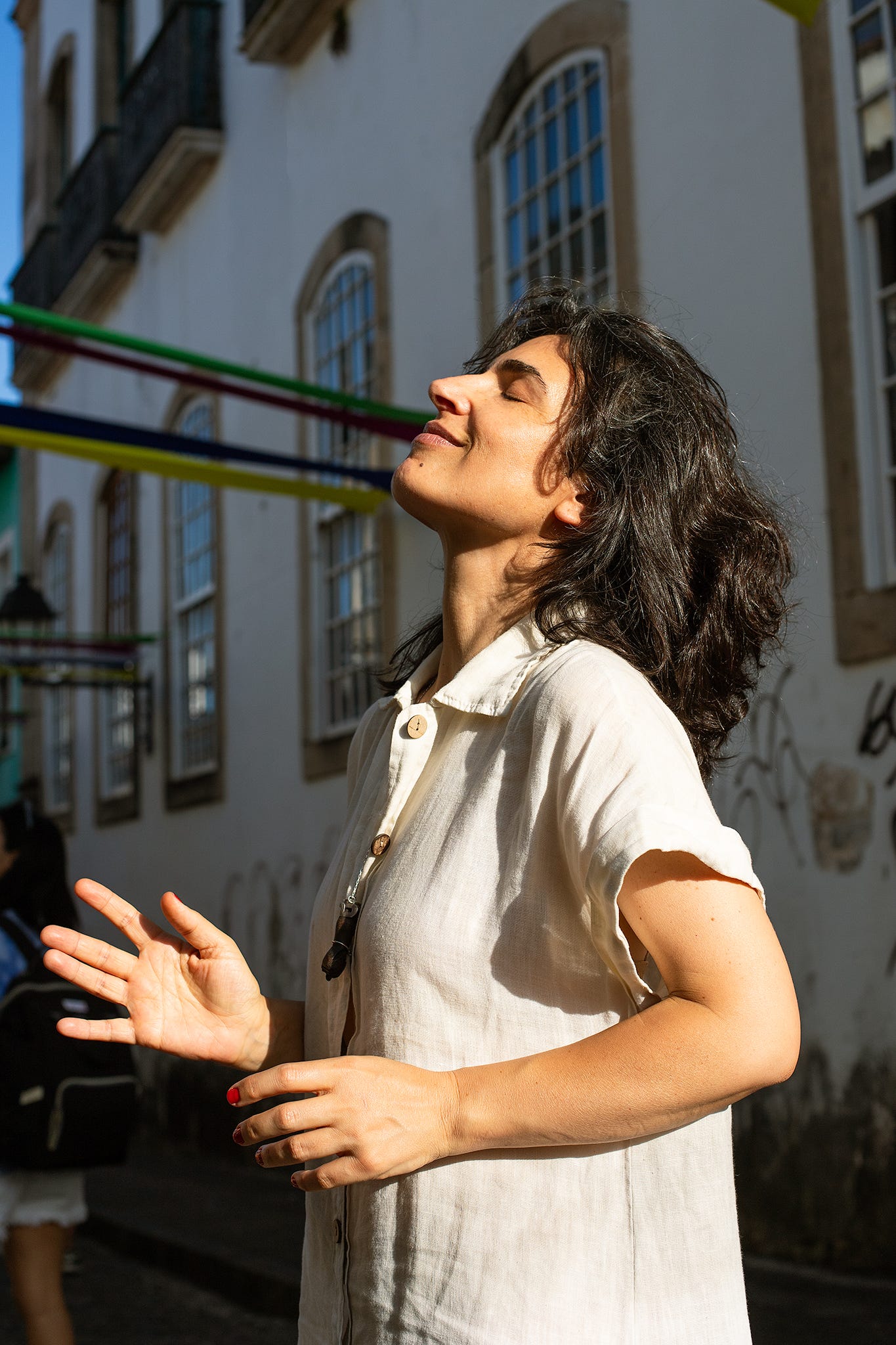 Pensando em dançar, não consigo não pensar nesta foto de Anabela Mota Ribeiro, escritora portuguesa, que conheci agora na Flipelô de 2025: saí de uma casa no Pelourinho onde tinha acabado de escutar uma fala de Izabella Cristo, Mariana Paiva e Henrique Rodrigues, e dei de frente com Anabela dançando no meio da rua, ao som de uma batucada. Obviamente, eu não podia perder a oportunidade de fazer uma foto. E a foto foi essa aqui: